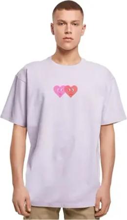 Men's MP5012536-Hugs & Love-Two Hearts Heavy Oversize Tee T-Shirt, Lilac, M