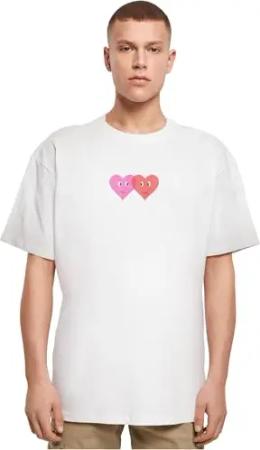 Men's MP5012536-Hugs & Love-Two Hearts Heavy Oversize Tee T-Shirt, White, Large