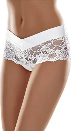 Damen Hipster Hot Pants aus Baumwolle mit floraler Spitze atmungsaktive Unterhose mit V-Front Damen Unterwäsche MSGAB155 (Weiß, 36 (Größe: S))