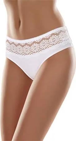 Damen Slip aus Baumwolle mit Spitze atmungsaktive Unterhose mit klassischem Schnitt weiche Damen Unterwäsche MSGAB21 (Weiß, 36 (Größe: S))