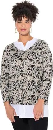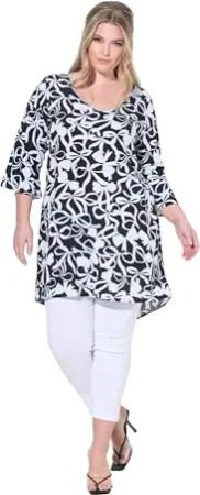 Damen große Größen Übergrößen Plus Size Tunika, A-Linie, Alloverdruck, 3/4-Ärmel schwarz 48 837100100-48