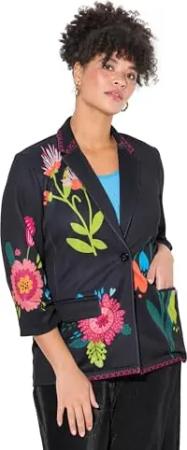 Damen große Größen Übergrößen Plus Size Blazer, Classic Fit, Scuba, Blüten-Muster schwarz 50 838785100-50