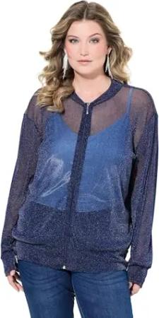 Damen große Größen Übergrößen Plus Size Blouson, Mesh mit Glitzer, Langarm dunkelblau 52 835785750-52
