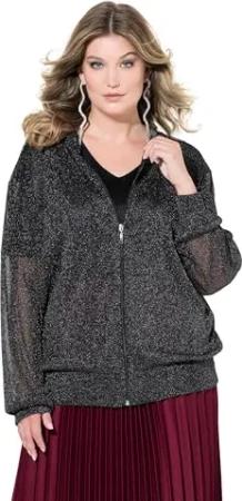 Damen große Größen Übergrößen Plus Size Blouson, Mesh mit Glitzer, Langarm schwarz 52 835785100-52