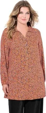 Damen große Größen Übergrößen Plus Size Bluse, A-Linie, Leomuster, Saum-Volant, Langarm orange 54 836773650-54
