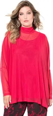 Damen große Größen Übergrößen Plus Size Bluse, Oversized, Mesh, Glitzersteinchen, Top neon rot 42+ 837115520-42+