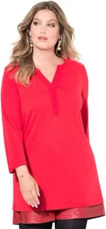 Damen große Größen Übergrößen Plus Size Blusenshirt, Straight Fit, Ausschnitt mit Chiffon neon rot 50 836156520-50
