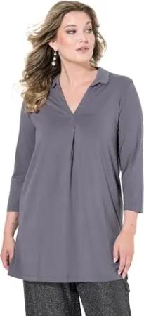 Damen große Größen Übergrößen Plus Size Blusenshirt, Straight Fit, Hemdkragen, 3/4-Ärmel dunkelgrau 48 836146101-48
