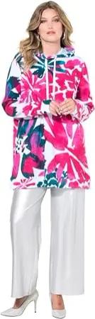 Damen große Größen Übergrößen Plus Size Hoodie, Blütenmuster, Kapuze, Langarm Dunkles Petrol 52 832243751-52