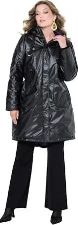 Damen große Größen Übergrößen Plus Size Jacke, A-Linie, farbiges Futter, Kapuze schwarz 48 833922100-48