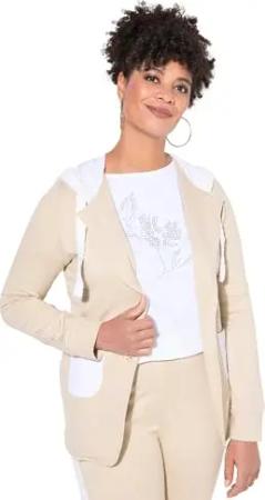 Damen große Größen Übergrößen Plus Size Jerseyblazer, Straight Fit, Kapuzen mit Pailletten Sandstein 46 839537300-46