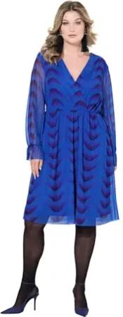 Damen große Größen Übergrößen Plus Size Kleid, A-Linie, Mesh mit Alloverdruck, Langarm Dunkles Saphir 54 835782740-54