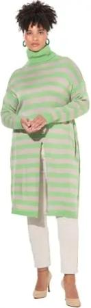 Damen große Größen Übergrößen Plus Size Long-Pullover, A-Linie, Ringel, Saumschlitz pastellgrün 42+ 836418426-42+