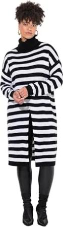 Damen große Größen Übergrößen Plus Size Long-Pullover, A-Linie, Ringel, Saumschlitz schwarz 58+ 836418100-58+