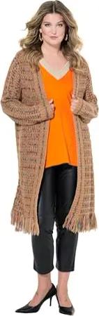 Damen große Größen Übergrößen Plus Size Long-Strickjacke, Straight Fit, Fransensaum haselnuss 46+ 833982312-46+