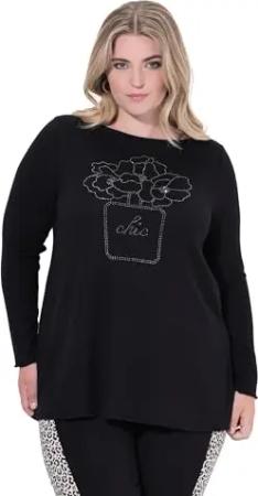 Damen große Größen Übergrößen Plus Size Pullover, A-Linie, Glitzersteinchen, Langarm schwarz 46 844026100-46