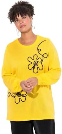 Damen große Größen Übergrößen Plus Size Pullover, Blumen, Ballon-Langarm korngelb 58+ 837201450-58+
