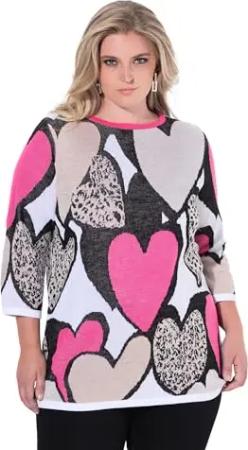 Damen große Größen Übergrößen Plus Size Pullover, Loose Fit, Herzen, 3/4-Ärmel Multicolor 50+ 844165900-50+