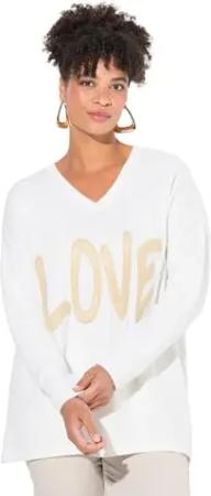 Damen große Größen Übergrößen Plus Size Pullover, Oversized, Love schneeweiß 46+ 837462200-46+