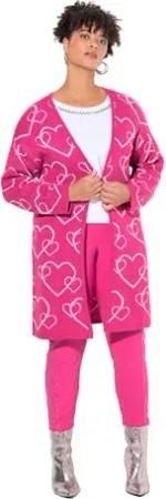 Damen große Größen Übergrößen Plus Size Strickjacke, Classic Fit, Herzmuster hibiskuspink 50+ 836339510-50+