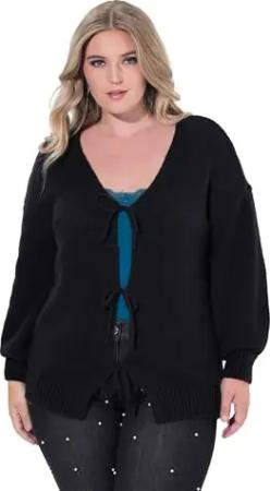 Damen große Größen Übergrößen Plus Size Strickjacke, Loose Fit, Schleifenverschluss schwarz 58+ 845334100-58+