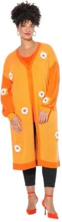 Damen große Größen Übergrößen Plus Size Strickjacke, Straight Fit, Blüten-Streifen, Langarm kräftiges orange 54+ 834004658-54+