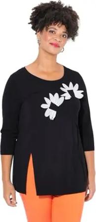 Damen große Größen Übergrößen Plus Size T-Shirt, A-Line, 3D-Blumen schwarz 52 837231100-52