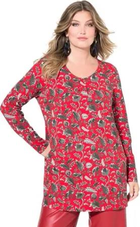 Damen große Größen Übergrößen Plus Size T-Shirt, Oversized, Blümchen, Halbarm rot 44 840141535-44