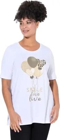 Damen große Größen Übergrößen Plus Size T-Shirt, A-Linie, Luftballon-Motiv schneeweiß 44 839257200-44