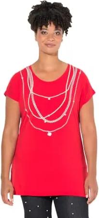 Damen große Größen Übergrößen Plus Size T-Shirt, A-Linie, Perlenketten-Druck, Halbarm rot 46 833810535-46