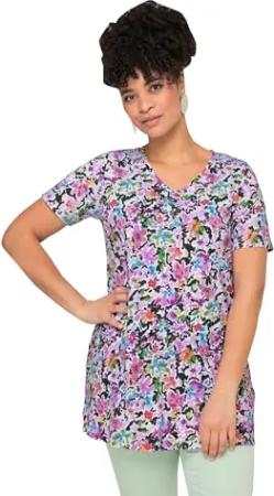 Damen große Größen Übergrößen Plus Size T-Shirt, Blumenmuster, V-Ausschnitt, Halbarm Multicolor 48 832075900-48