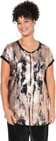 Damen große Größen Übergrößen Plus Size T-Shirt, Golddruck, Kette am Ausschnitt schwarz 48 839262100-48