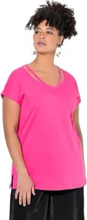 Damen große Größen Übergrößen Plus Size T-Shirt, Komfort Fit, Cutouts hibiskuspink 56 840342510-56