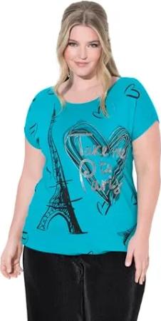 Damen große Größen Übergrößen Plus Size T-Shirt, Komfort Fit, Paris/Herz-Druck, elastischer Saum Jade 46 840536761-46