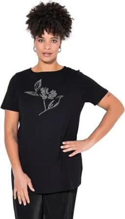 Damen große Größen Übergrößen Plus Size T-Shirt, Ziersteinchen-Blume, Halbarm schwarz 44 839593100-44