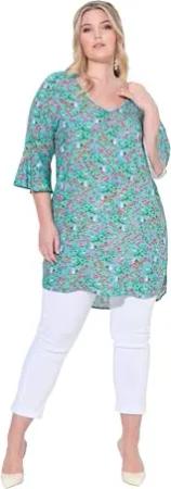 Damen große Größen Übergrößen Plus Size Tunika, A-Linie, Alloverdruck, 3/4-Ärmel helles mintgrün 44 837100701-44