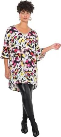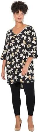 Damen große Größen Übergrößen Plus Size Tunika, A-Linie, Alloverdruck, 3/4-Ärmel schwarz 44 837100111-44