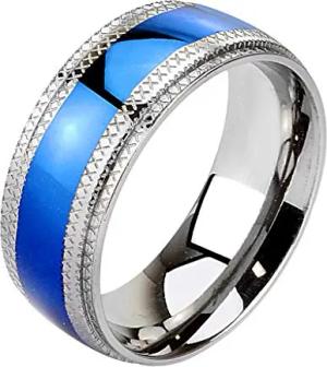 Band-Ring Edelstahl Herrenring Damenring Partnerring Trauring Verlobungsring Damen Herren Blau Größe 65 (20.7) Breit 8mm