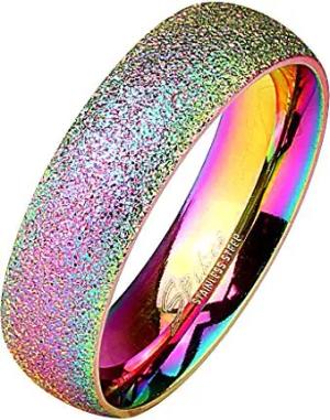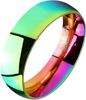 Band Ring Edelstahl Fingerring Rainbow Regenbogen Herrenring Damenring Partnerring Ehering Freundschaftring Damen Herren Größe 58 (18.5) Breit: 6mm