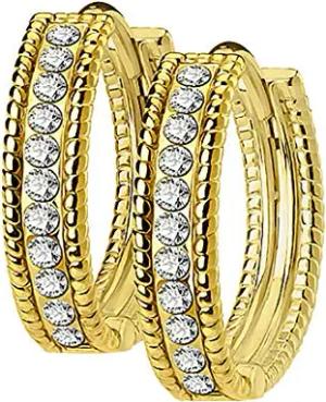 Damen Creolen Edelstahl Perlen Rand mit Kristallen Klapp-Verschluss Schmale Ohrringe Huggie Kreolen Stecker Ohrstecker zum Klappen rund Gold