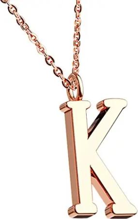 Damen Halskette Kette mit Buchstaben Anhänger Rosegold Vergoldet Buchstabe K