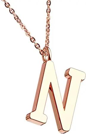 Damen Halskette Kette mit Buchstaben Anhänger Rosegold Vergoldet Buchstabe N