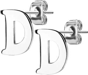 Damen Kinder Ohrstecker Ohrringe Stecker mit Buchstaben Alphabet Edelstahl Silber Buchstabe D