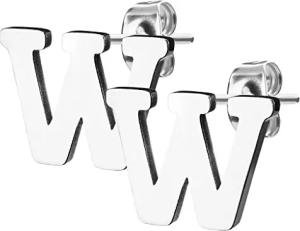 Damen Kinder Ohrstecker Ohrringe Stecker mit Buchstaben Alphabet Edelstahl Silber Buchstabe W