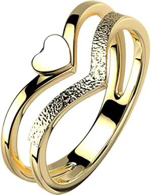 Damen Ring Edelstahl doppelter Chevron mit Herz Damenring sandgestrahlt Fingerring Gold Größe 54 (17.2)