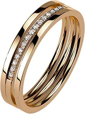 Damen Ring Edelstahl Bandring Damenring Verlobungsring Ehering mit Kristallen Größe 57 (18.1) Gold