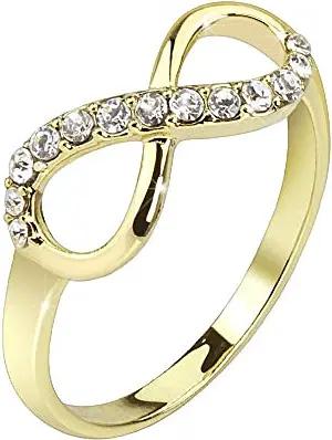 Damen Ring Edelstahl Infinity Unendlichkeit mit Zirkonia Kristall Strass Stein Verlobungsring Damenring Trauring Gold Größe 49 (15.6)