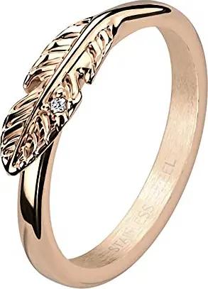 Damen Ring Edelstahl Rosegold Blatt mit einem Kristall Zirkonia Stein Damenring Solitärring Trauring Verlobungsring Fingerring Rose Gold vergoldet Größe 54 (17.2)