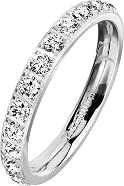 Damen Ring Edelstahl Bandring Damenring Verlobungsring Ehering mit Kristallen Größe 55 (17.5) Silber