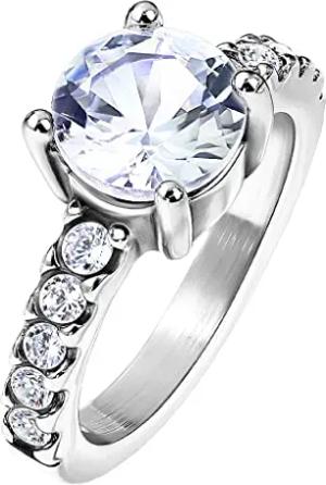 Damen Ring Verlobungsring Edelstahl mit einem Zirkonia Kristall Strass Solitär Stein Damenring Trauring Größe 53 (16.9) Silber
